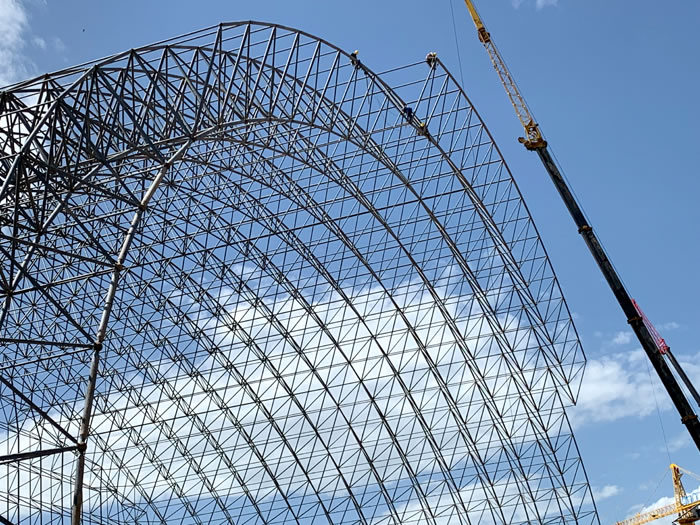 (2)网架加工前应对现场尺寸进行复测,确认无误后方可进行加工、安装;网架制作、运输、安装应遵守《空间网格结构技术规程》JGJ7-2010、《钢网架涿州螺栓球节点》JG/T 10-2009、《钢网架涿州螺栓球节点用高强度螺栓》 GB/T 16939-2016、《涿州钢结构涿州工程涿州施工规范》 GB50755-2012、《涿州钢结构涿州工程涿州施工质量验收标准》 GB50205-2020。